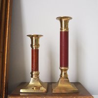 Pair of vintage candlestick holders | Brass candlestick holders | Tall brass candlestick holders | Mismatched candlestick holders