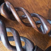 Pair of vintage candlestick holders, beautiful dark wood. One is a bit lighter than the other.