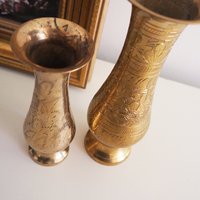 Set of two vintage brass vases | Etched brass vases | Vintage bud vase | Vintage single flower vases | Vintage brass vases