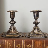 Set of two vintage candlestick holders | Silver plated candlestick holders | Ornate silver candlestick holders | Made in Finland