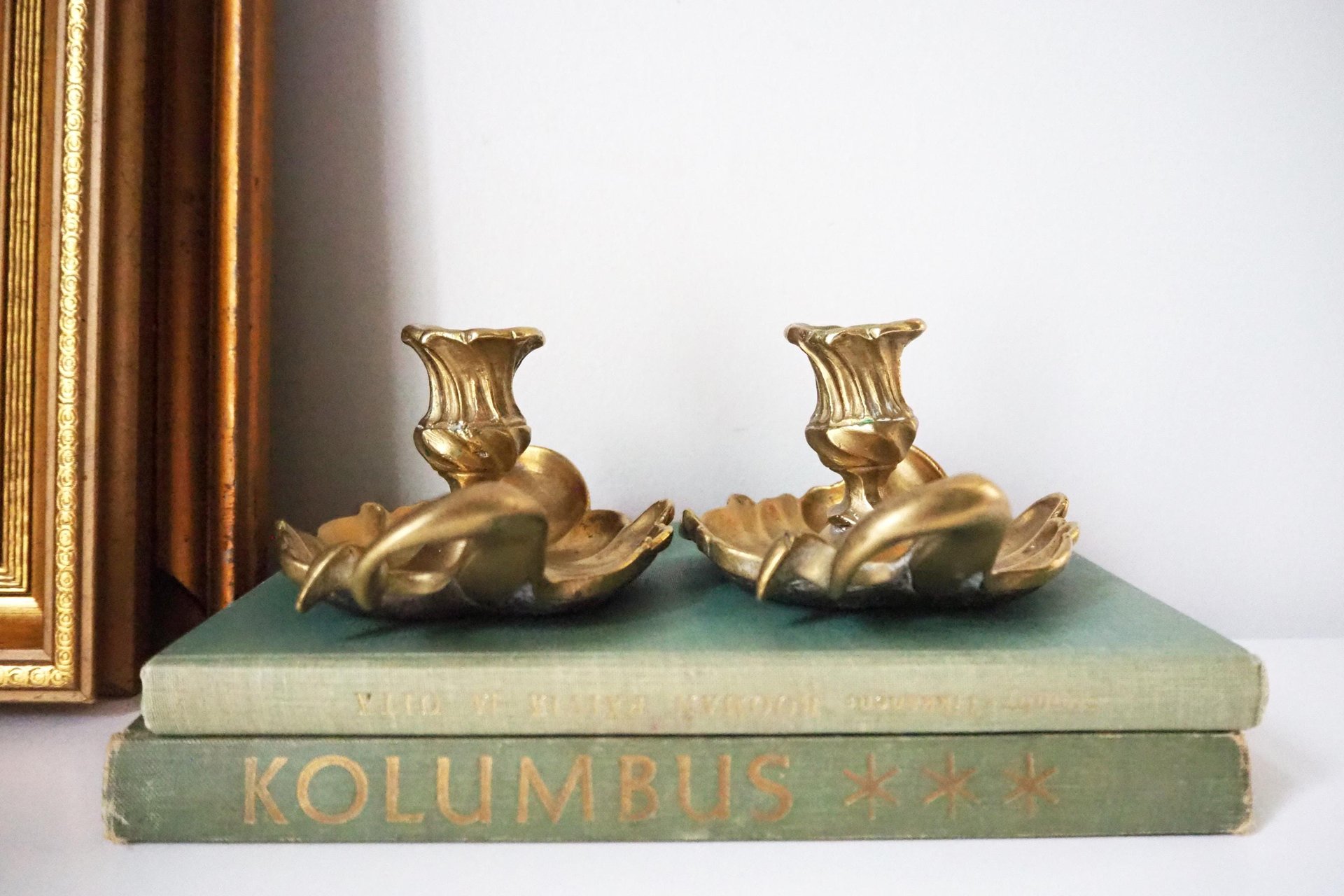 Set of two gorgeous matching vintage chamber style candlestick holders. Have a good weight to them. (combined weight about 2.15 lb | 975 grams)