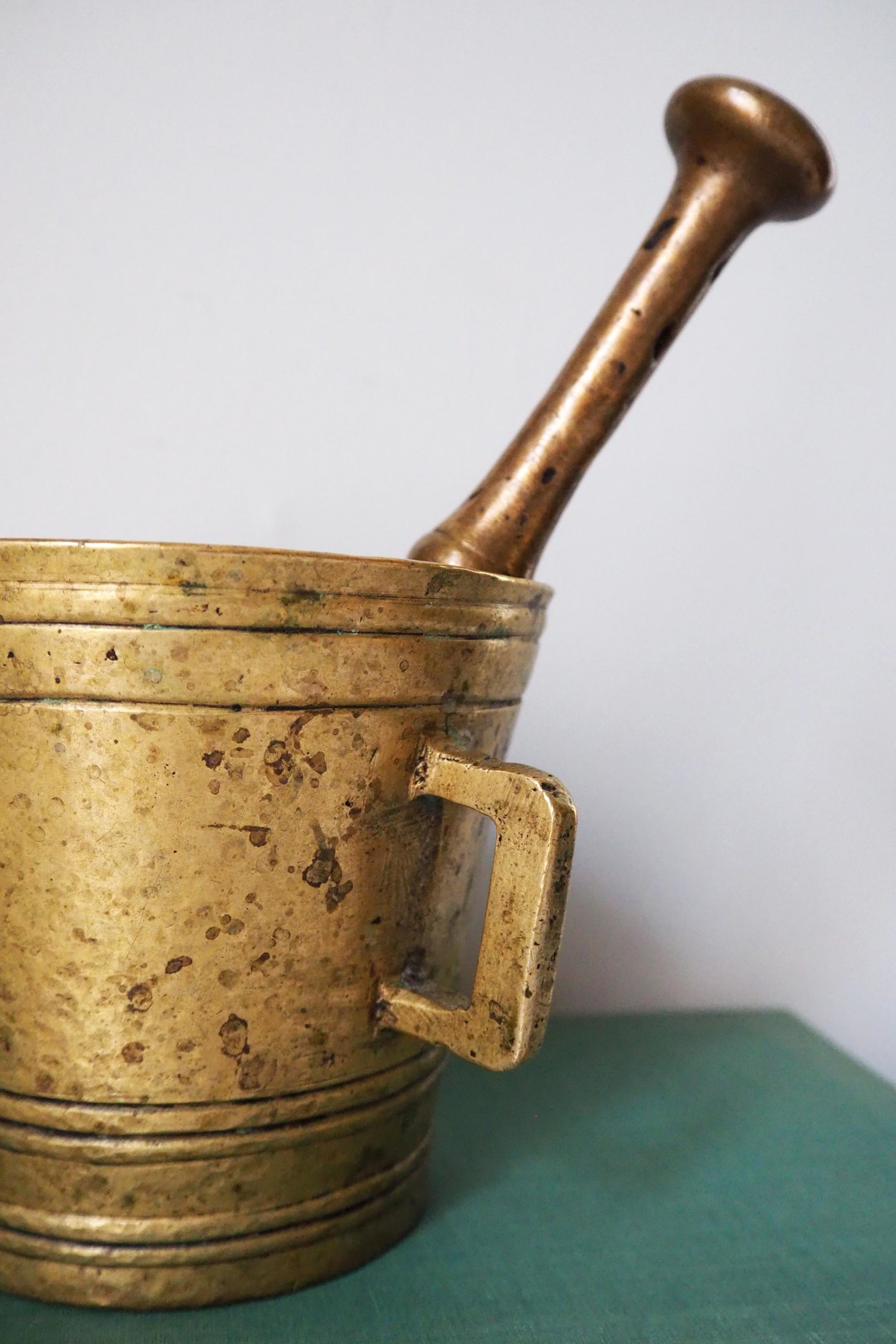 Vintage brass mortar and pestle | Heavy brass mortar | Vintage brass mortar | Large brass mortar set | Antique mortar set