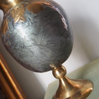 Vintage brass vase | Enameled vase with a fruit motif | Vintage vase | Brass and enamel vase | Chunky vase | Brass vase