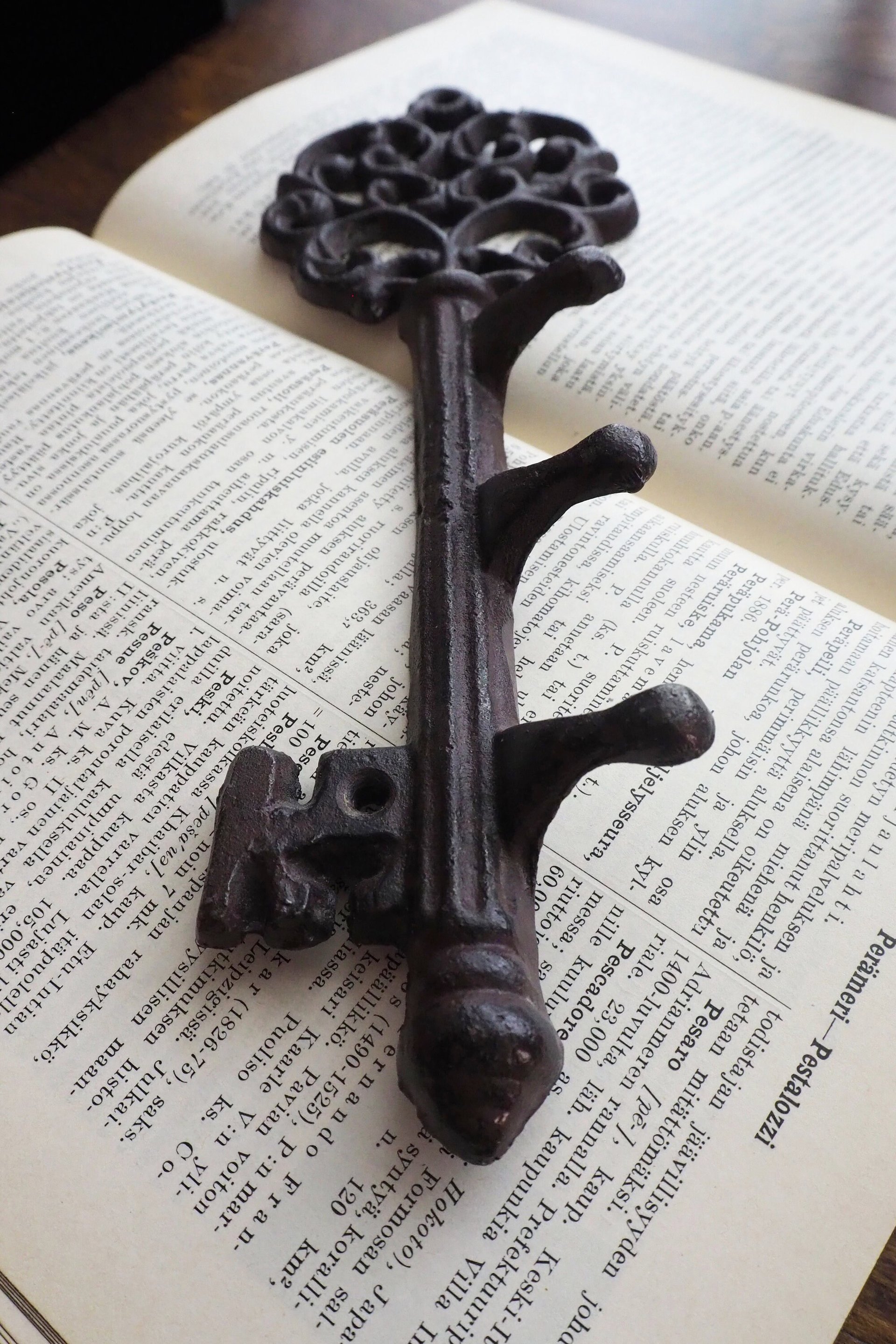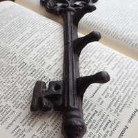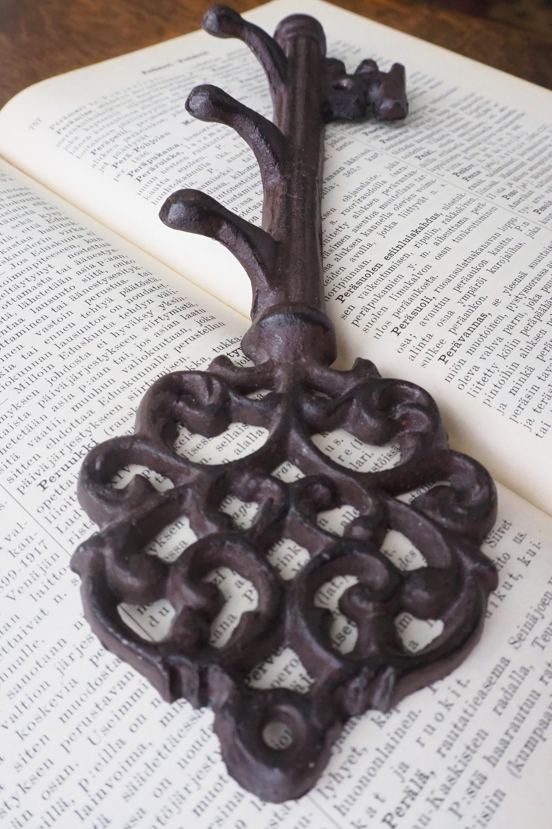 Vintage cast iron key rack | Small vintage key rack | Key shaped wall rack | Key shaped rack with three hooks | Vintage wall rack