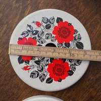 Set of two matching enamelled stove top burner covers for electric ovens. Made in Finland by Finel, designed by Esteri Tomula.