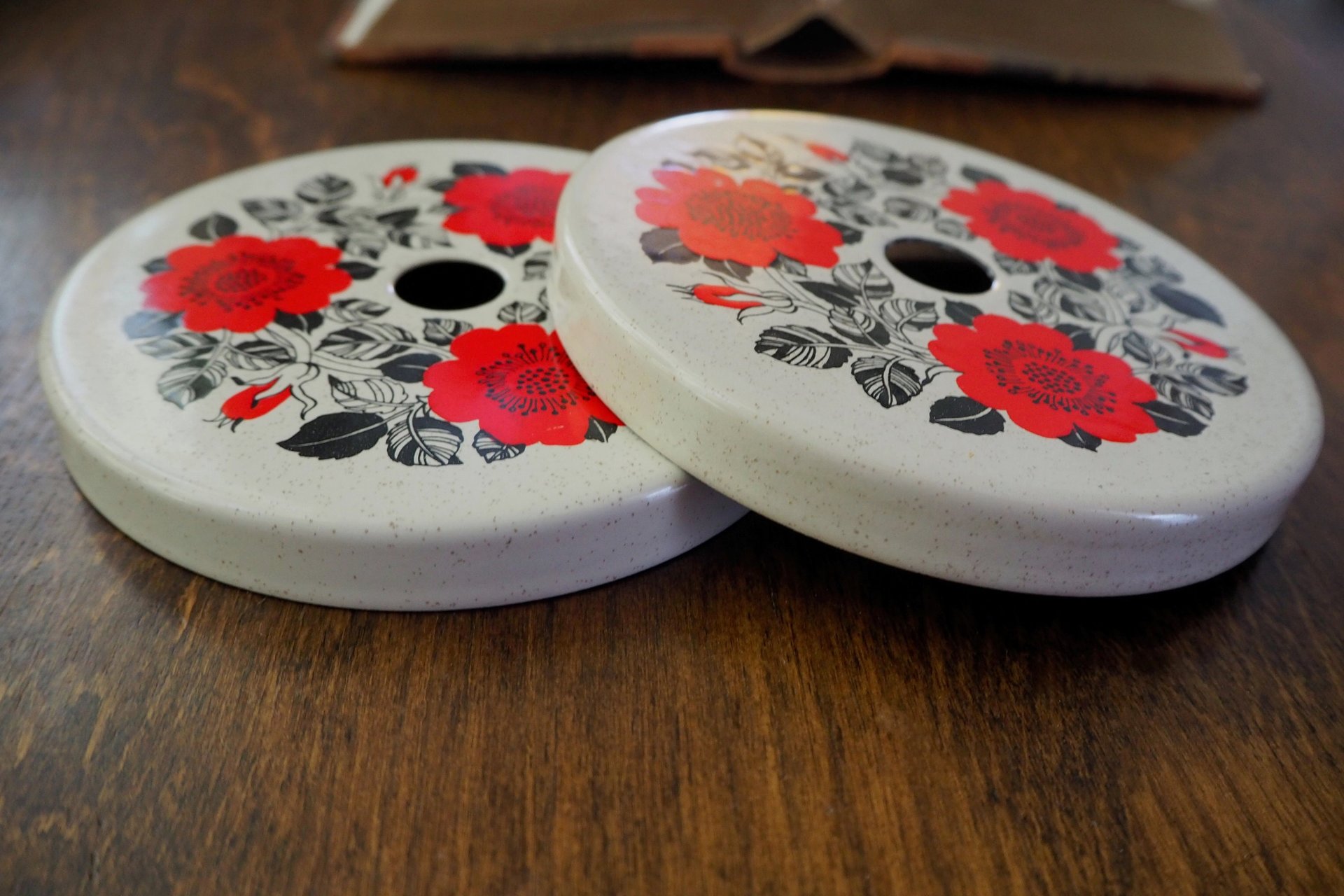 Vintage enamelled stove top burner covers | Electric stove burner covers | Set of two vintage burner covers | Finel | Esteri Tomula
