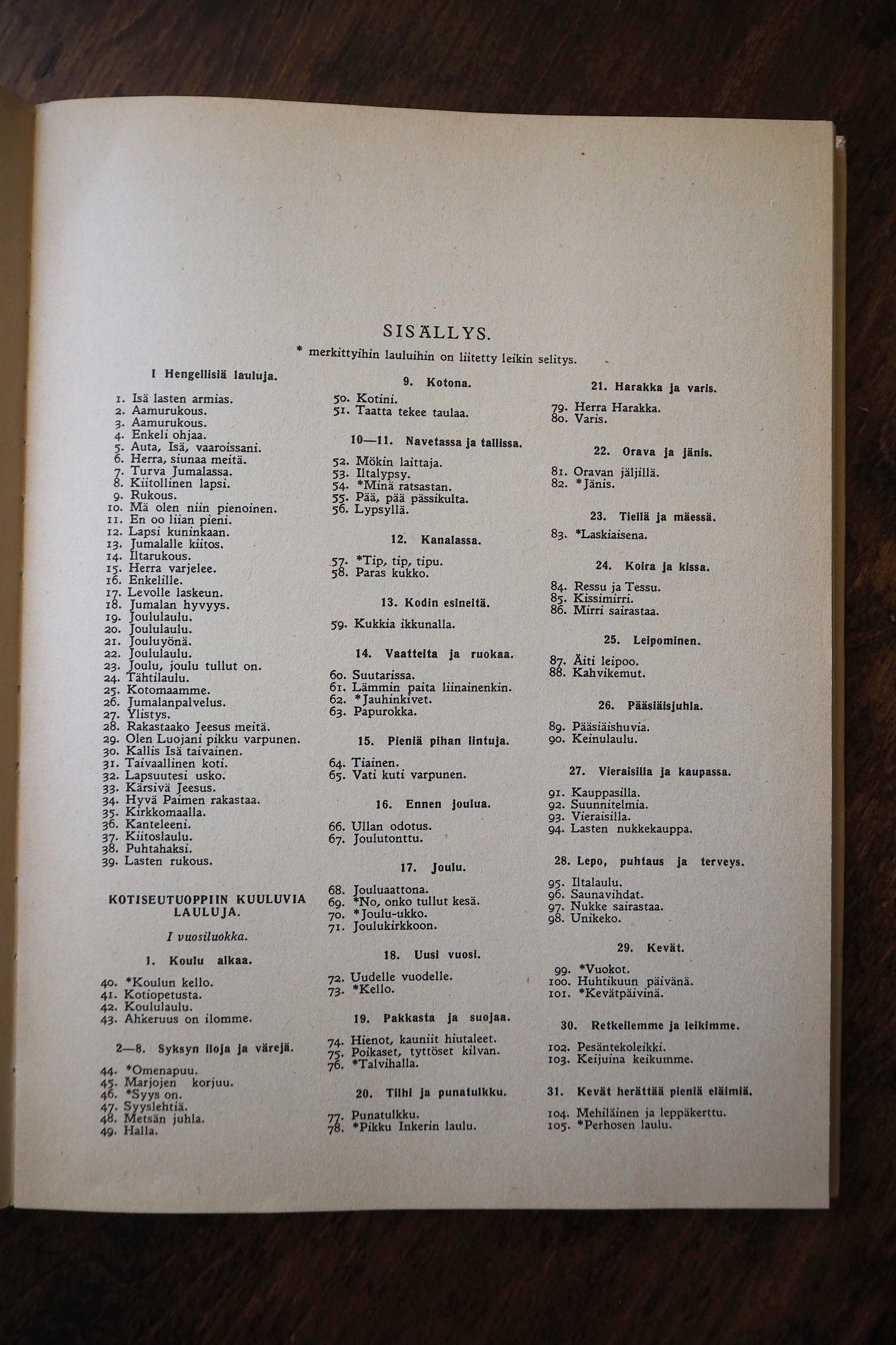 Set of two vintage Finnish music books, 'Lasten laulu- ja leikkikirja' and 'Iloinen laulukirja'.