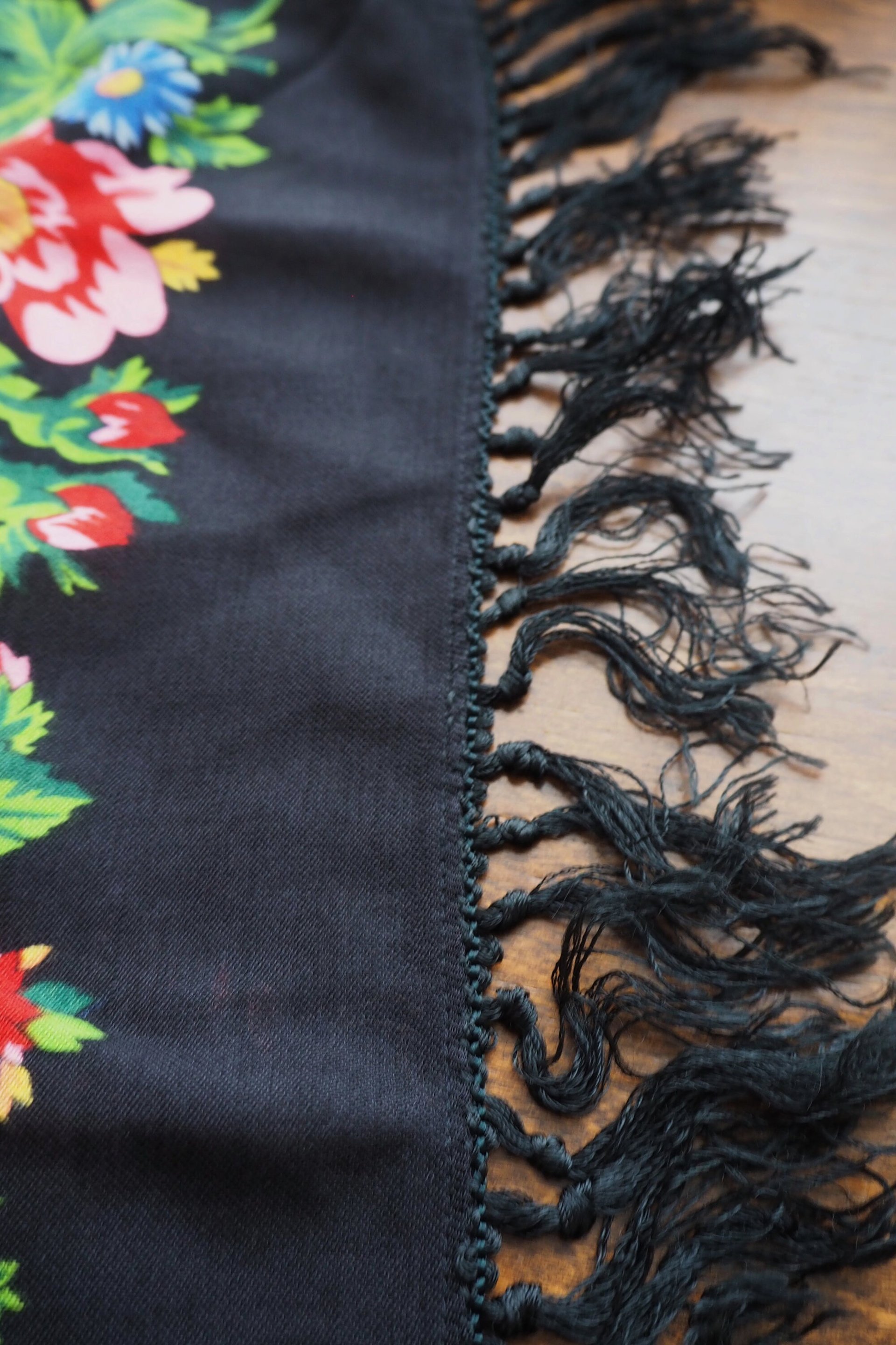 Vintage floral scarf | Floral scarf with a fringe | Vintage wool scarf | Vintage wool shawl | Russian floral scarf