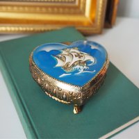 Vintage jewelry box | Heart shaped jewelry box | Vintage hinged trinket box | Small vintage jewelry box | Maritime jewelry box