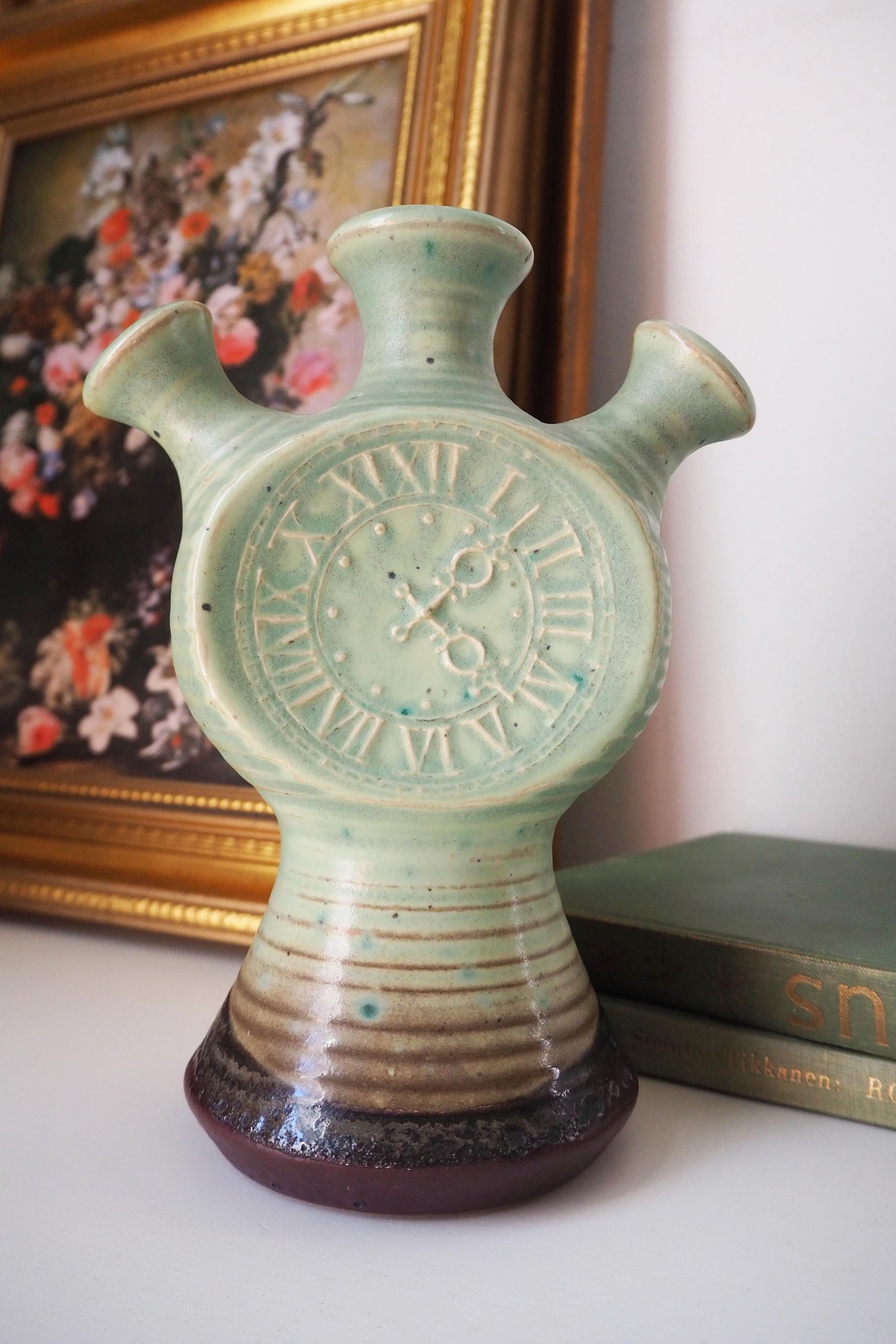 Unique vintage ceramic vase. Made in Finland by Kupittaan Savi, designed by Okki Laine.
