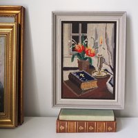 Vintage wool needlepoint wall art from the 1960s. Wooden frame, no glass.