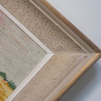Vintage needlepoint wall art piece. Wooden frame, no glass. Made in Finland.