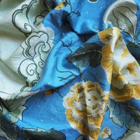 Vintage silk scarf | Floral silk scarf | Light green silk scarf | Large vintage silk scarf | Thai silk scarf | Floral silk scarf