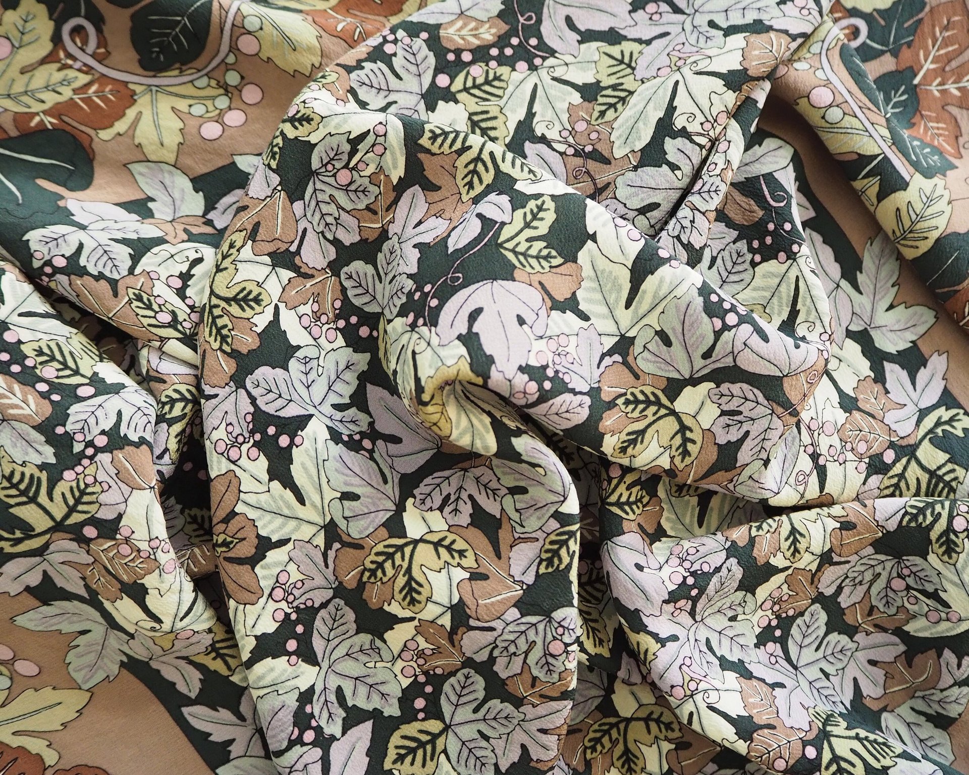 Vintage silk scarf | Vintage Marja Kurki scarf | Marja Kurki silk scarf | Vintage silk scarf with leaves