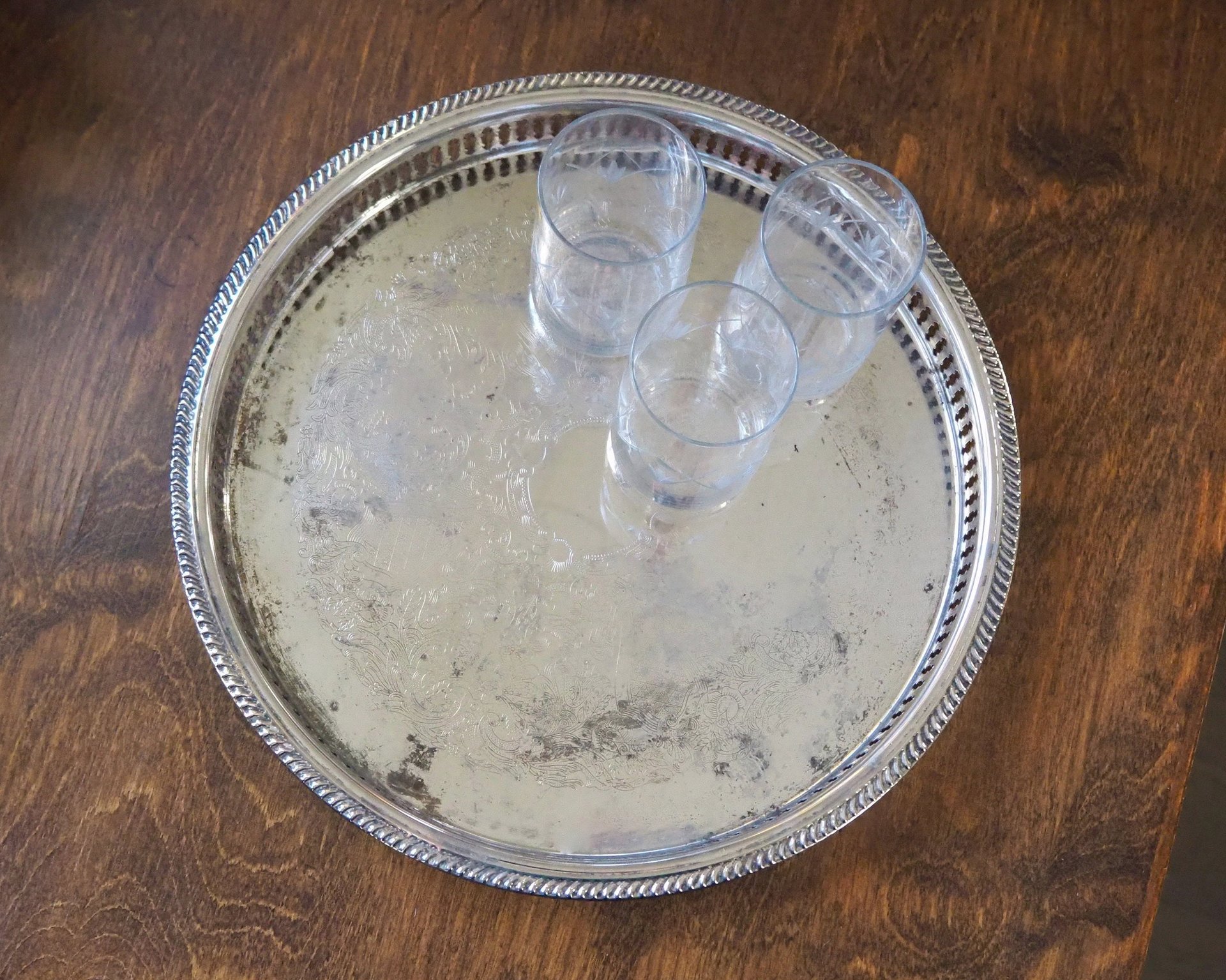 Vintage silver plated tray | Vintage tray with a raised edge | Silver plated serving tray with a cutout rim | Vintage decorative tray