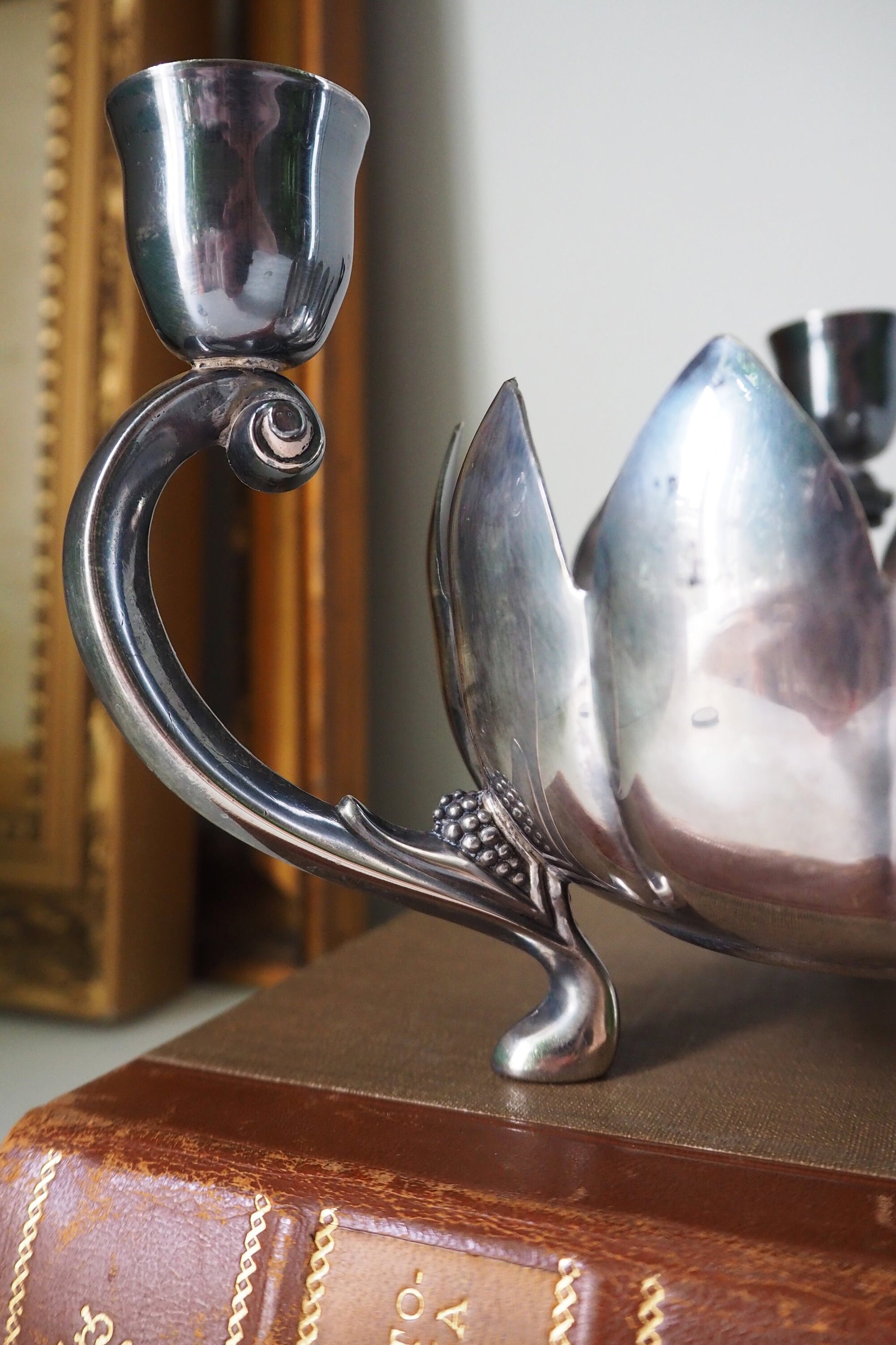 Vintage three arm candelabra | Footed lotus bowl candelabrum | Three arm candlestick holder | Vintage candelabrum | Leonard Silver plate