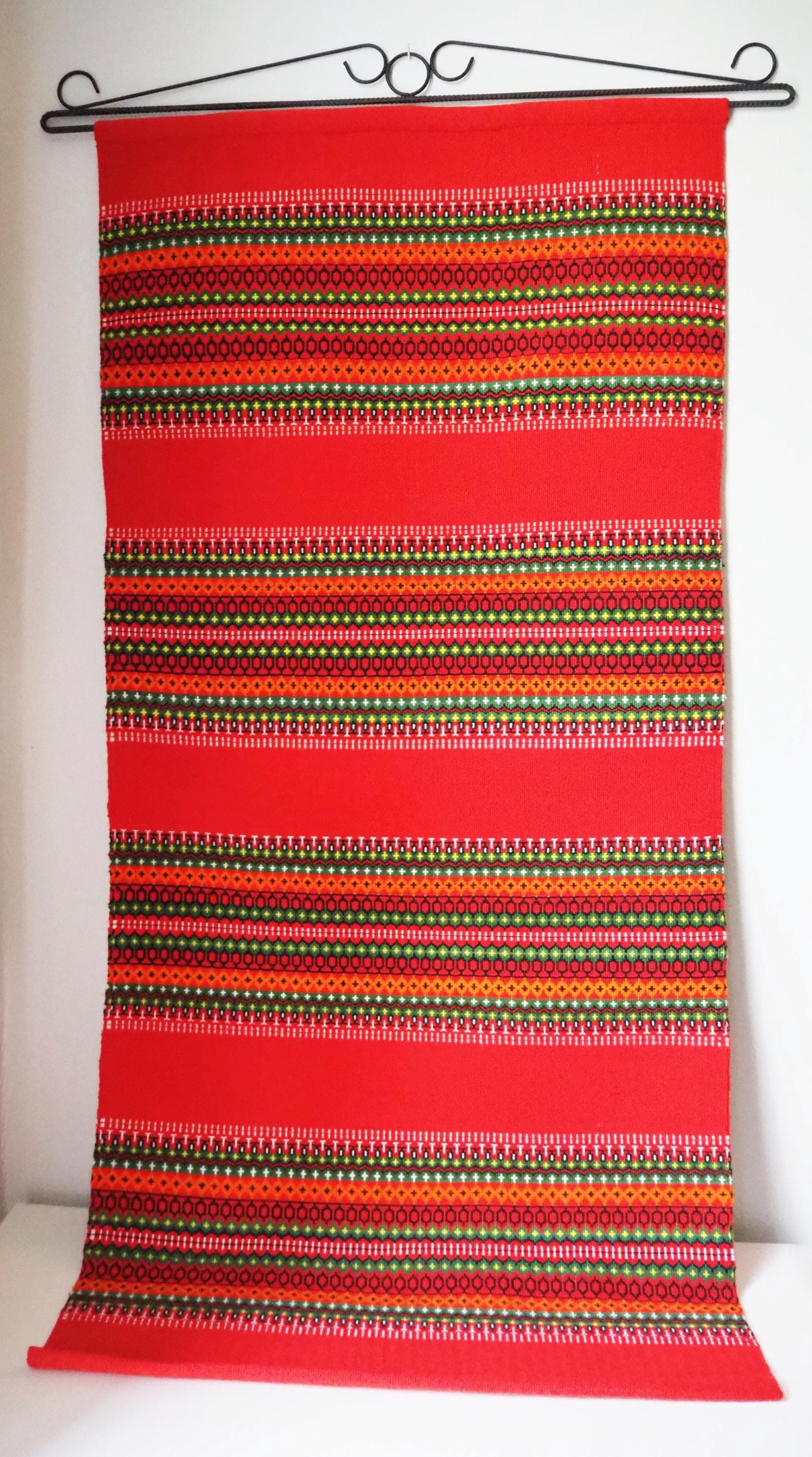 Large vintage wall hanging, made in Finland. Has a metal hanging rod at the top which can be easily removed if needed.