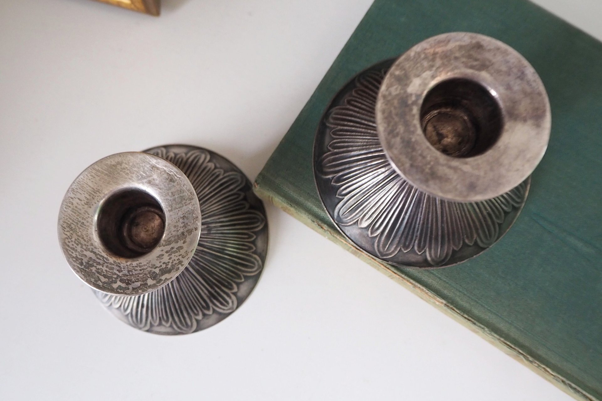 Pair of vintage candlestick holders | Alpacca silver candlestick holders | Floral alpacca silver candlestick holders