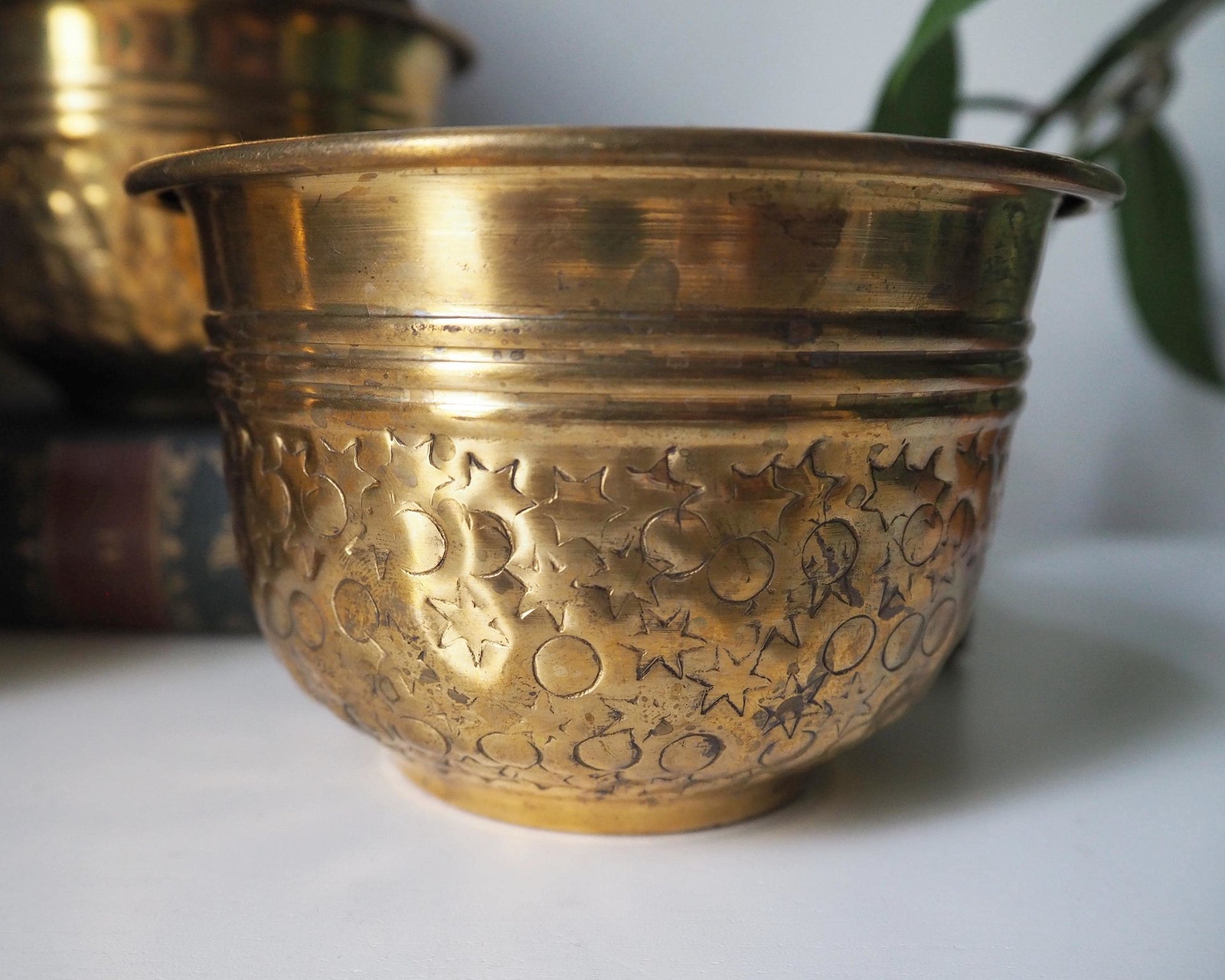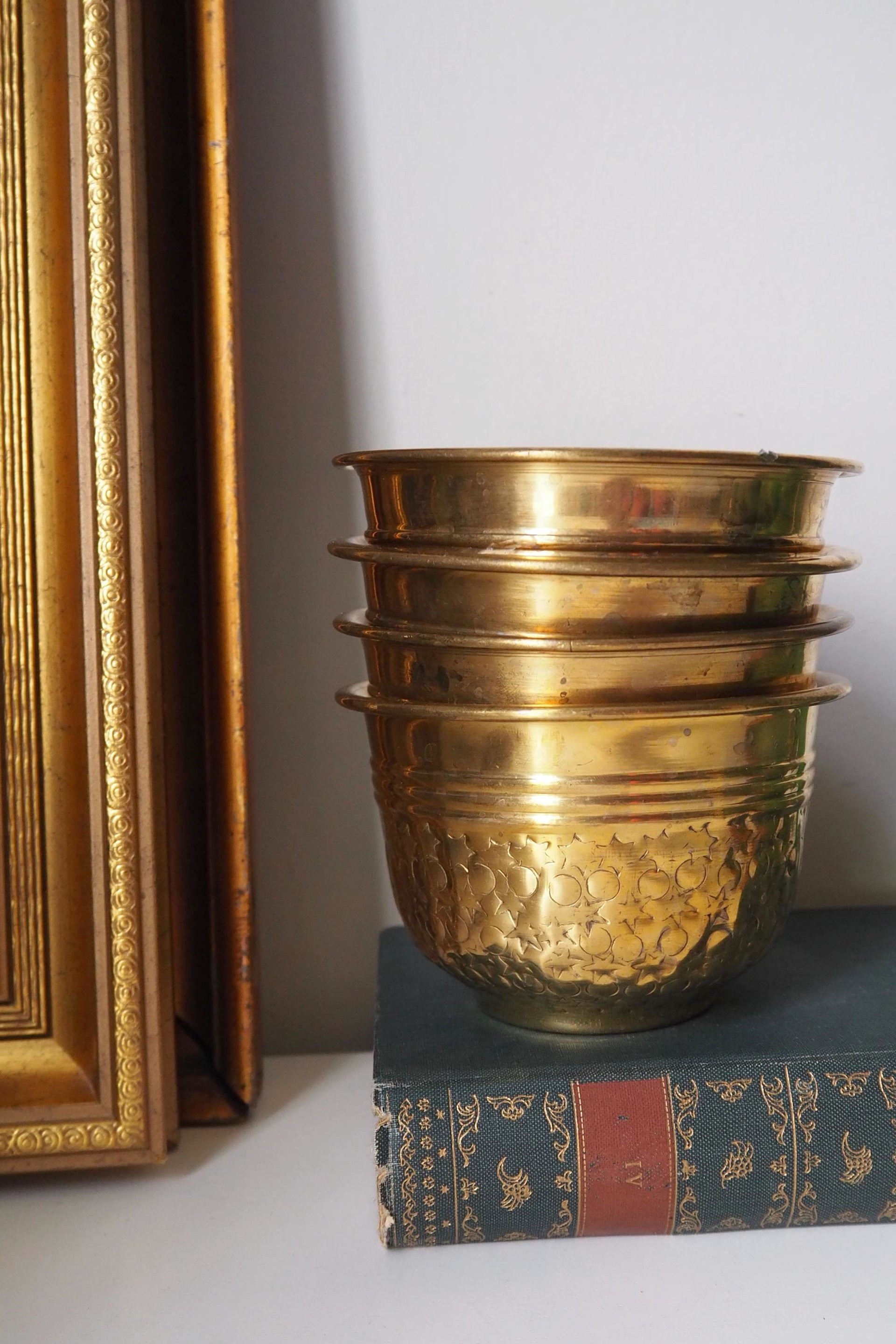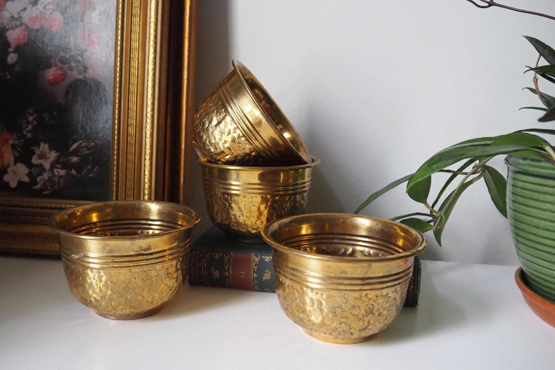 Set of four vintage planters | Small matching brass planters | Vintage brass planters | Round vintage planters | Vintage planters