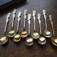 In good vintage condition, show some signs of use/wear. One spoon has a slightly larger bowl than the others.