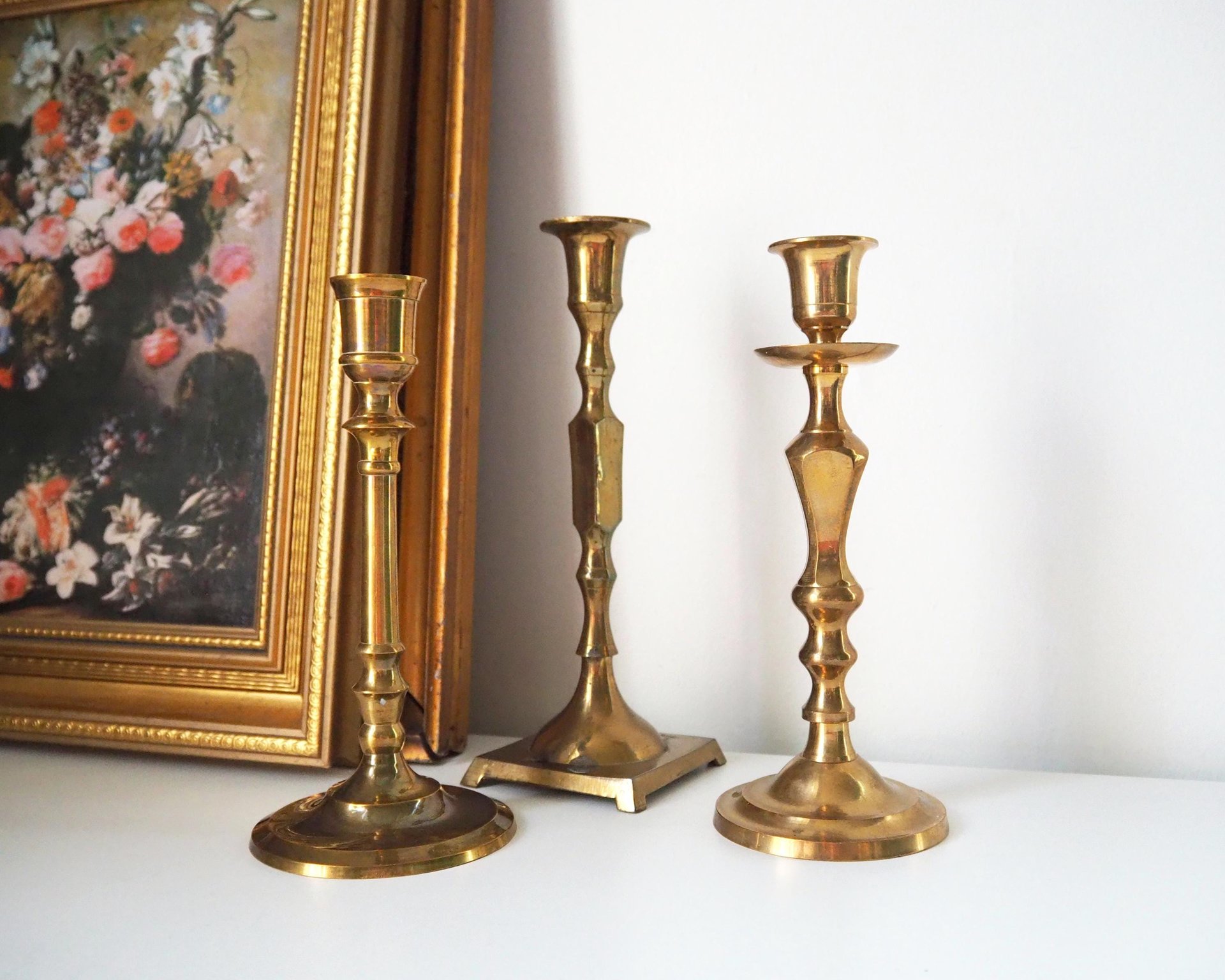 Set of three mismatched vintage candlestick holders | Brass candlestick holders | Vintage brass candle holders | Mismatched candle holders