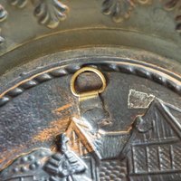 Set of two mismatched vintage copper wall plates. One made in England, the other in Holland. Both have a hook on the back for hanging them up. Very lightweight.