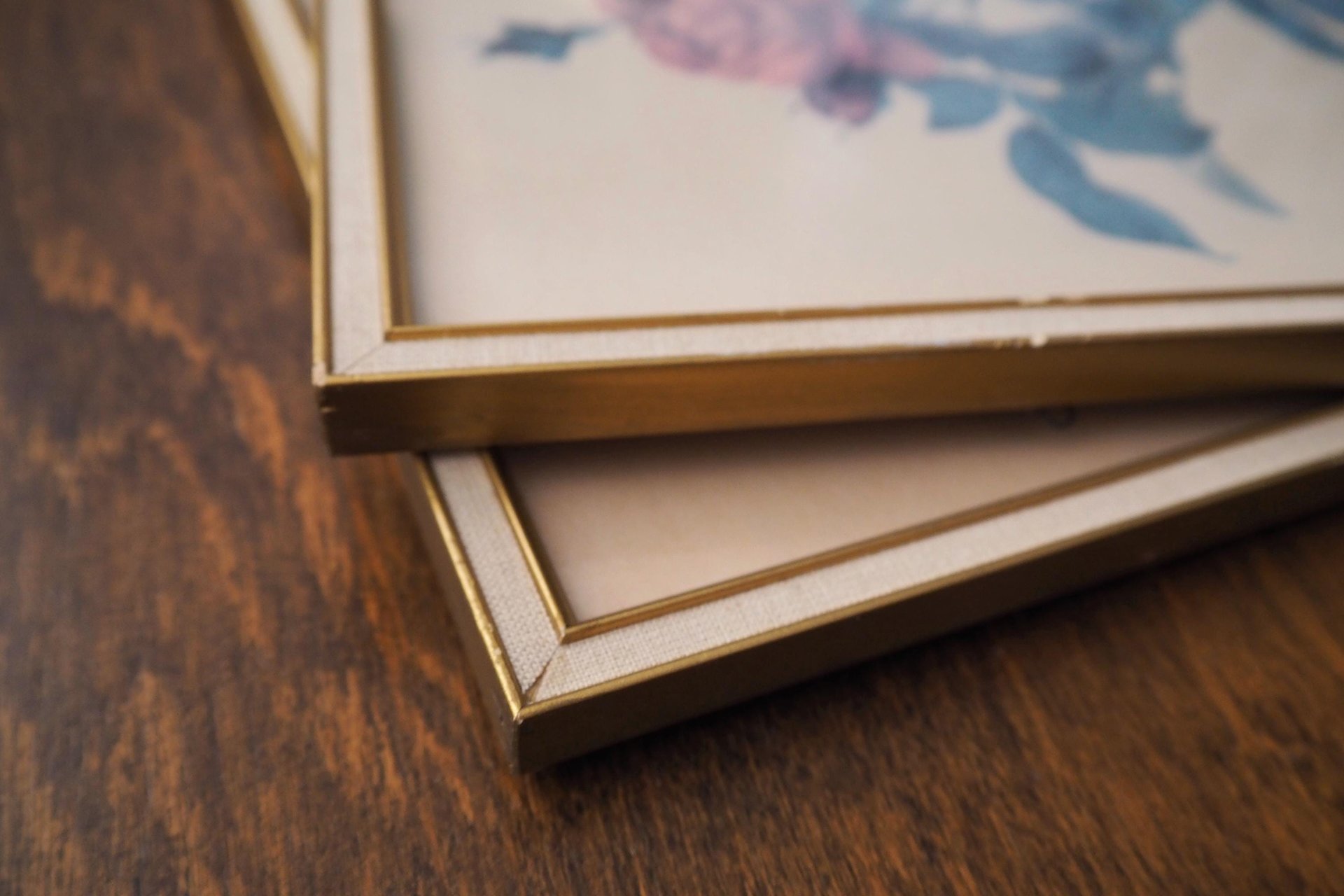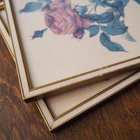 Set of two vintage framed rose prints. Have thin gold coloured wooden frames and a clear glass.