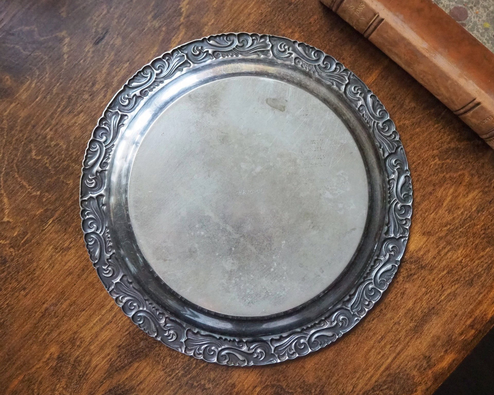 Vintage alpacca silver tray | Alpacca silver platter | Vintage serving tray | Engraved silver tray | Made in Finland