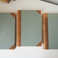 Hard bound with leather detailing on the spine and corners. The pages are printed on good quality, slightly thicker paper.