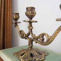 Vintage brass candelabrum with three arms and gorgeous ornate details.
