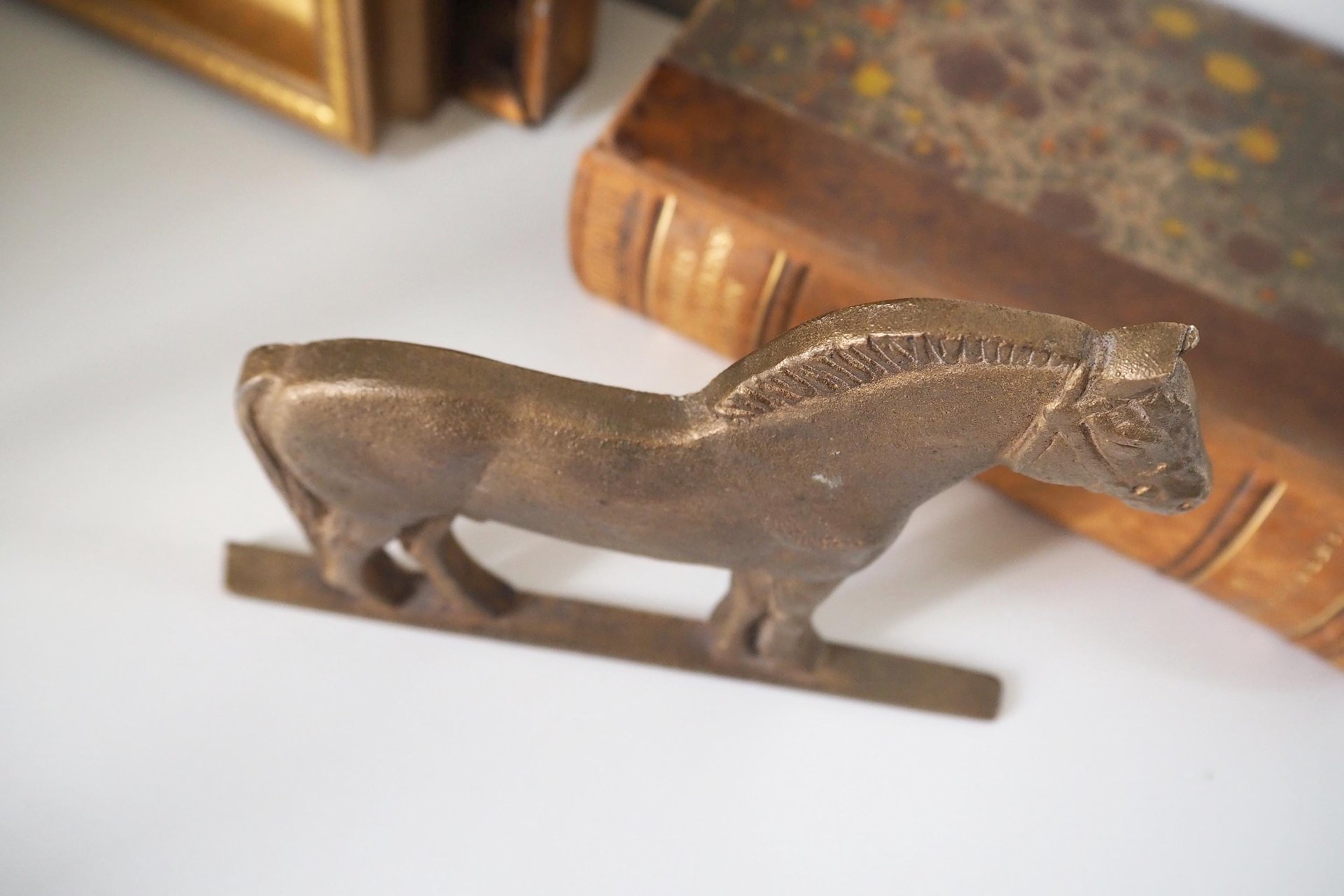 Elegant vintage brass horse. Stands up on its own, can also be hung up on the wall.