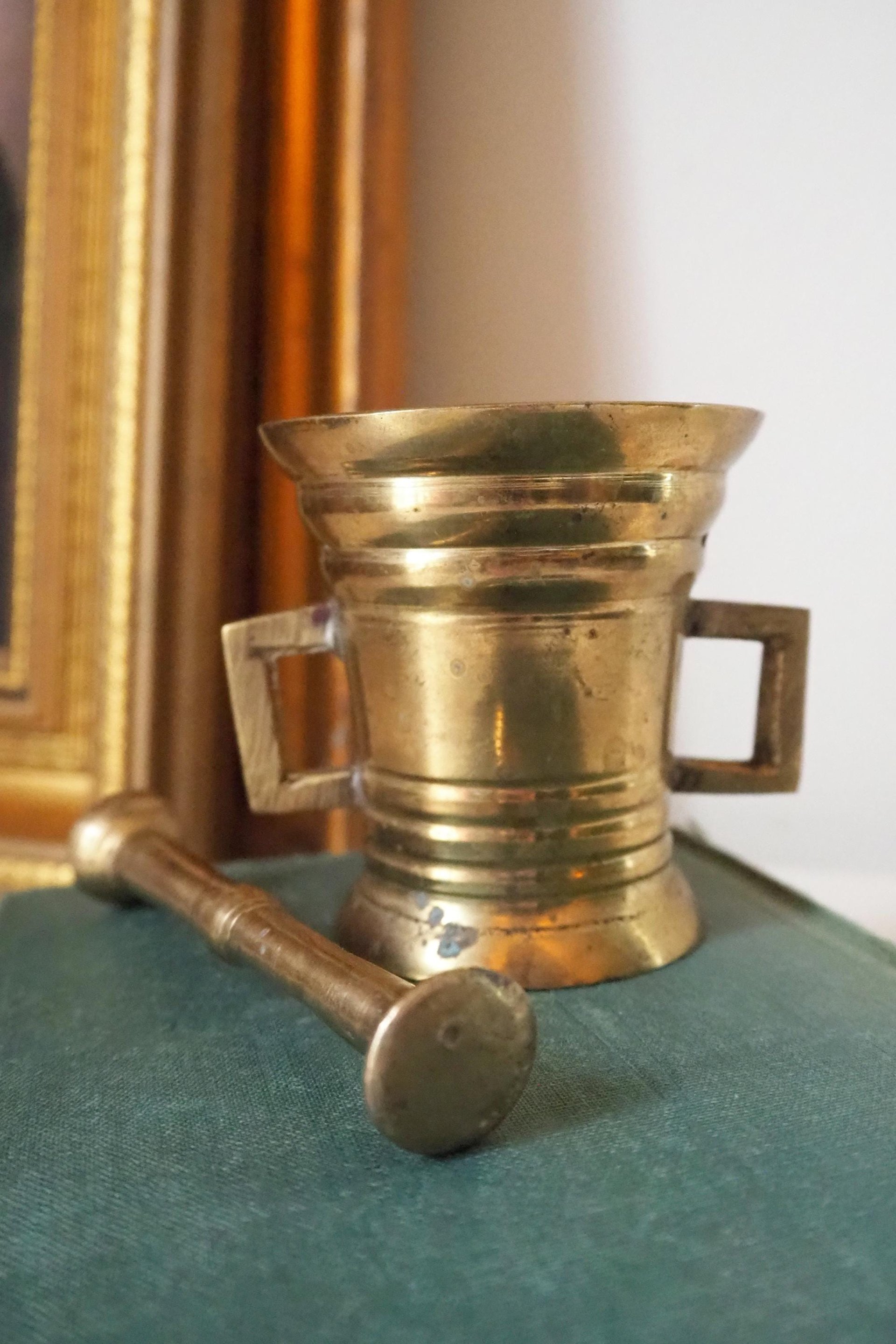 Small vintage brass mortar and pestle.