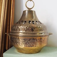 Vintage brass pomander | Vintage brass potpourri box | Large brass pomander | Brass home decor | Pierced brass box