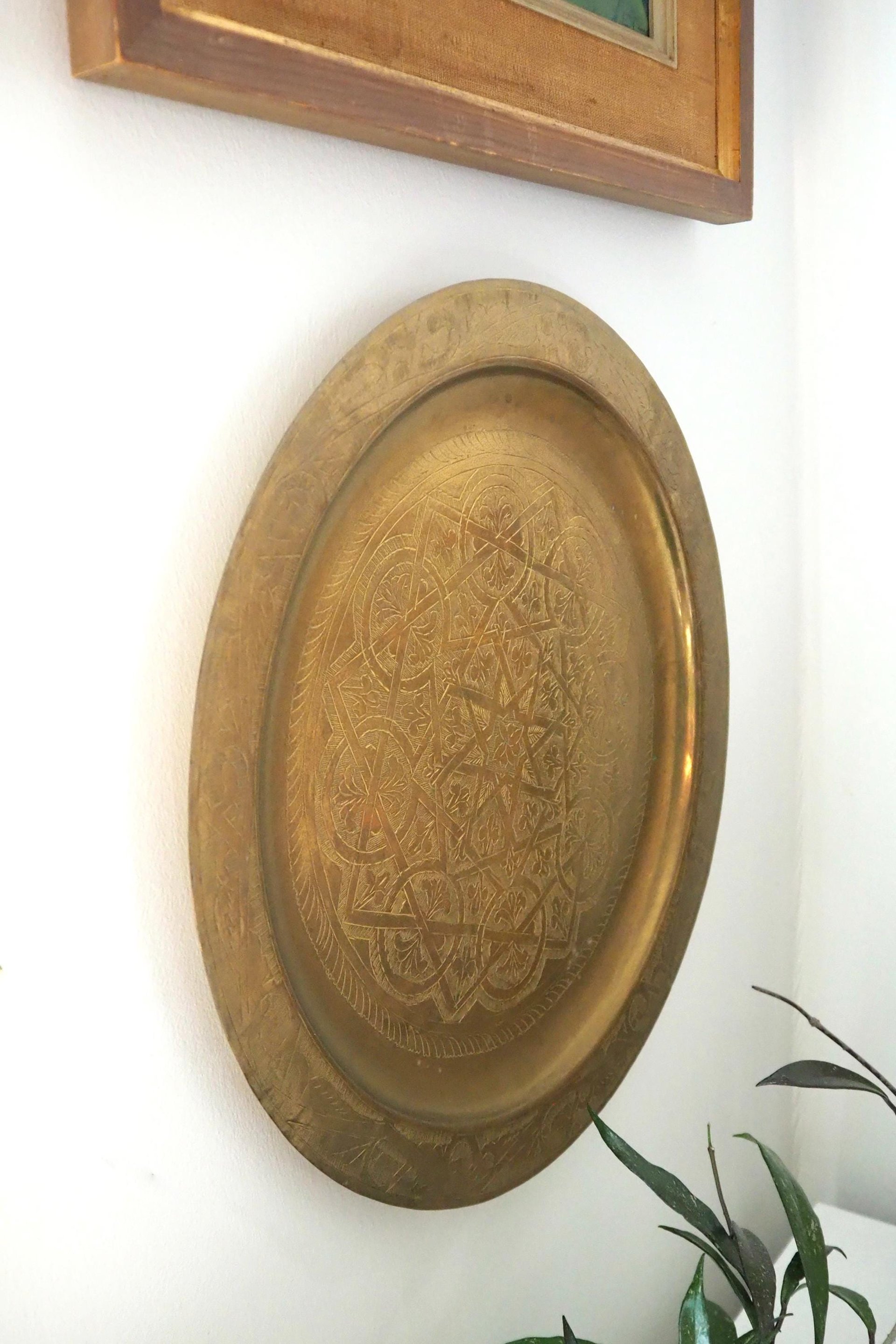 Vintage brass tray | Large brass wall plate | Vintage brass wall plate | Etched brass tray | Large etched brass wall plate