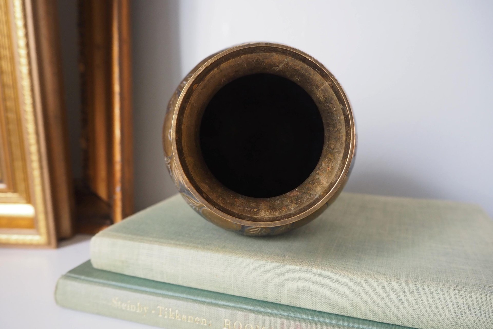 Beautiful vintage solid brass and enamelled vase.