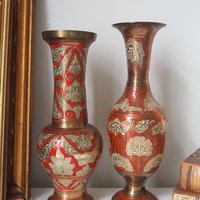 Vintage enamelled brass vases, made in India. Two different large vases available, please select from the drop-down menu.