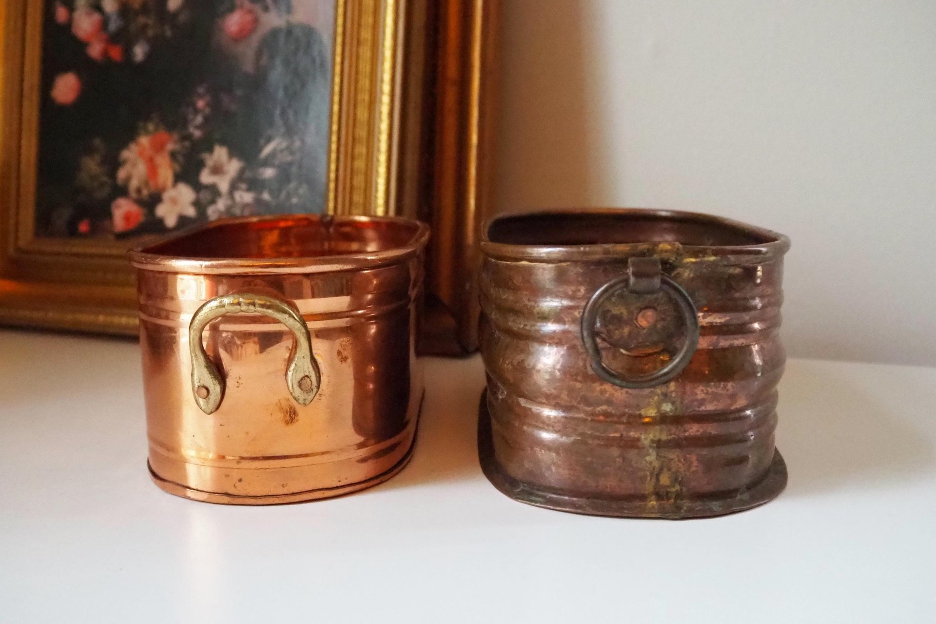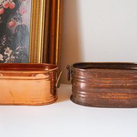 Vintage copper planters | Set of two mismatched copper planters | Vintage planters | Oblong copper planters | Vintage copper pots