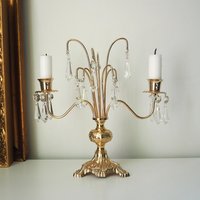 Vintage crystal candelabra | Vintage two arm candelabra | Gold plated candelabra | Vintage candelabra