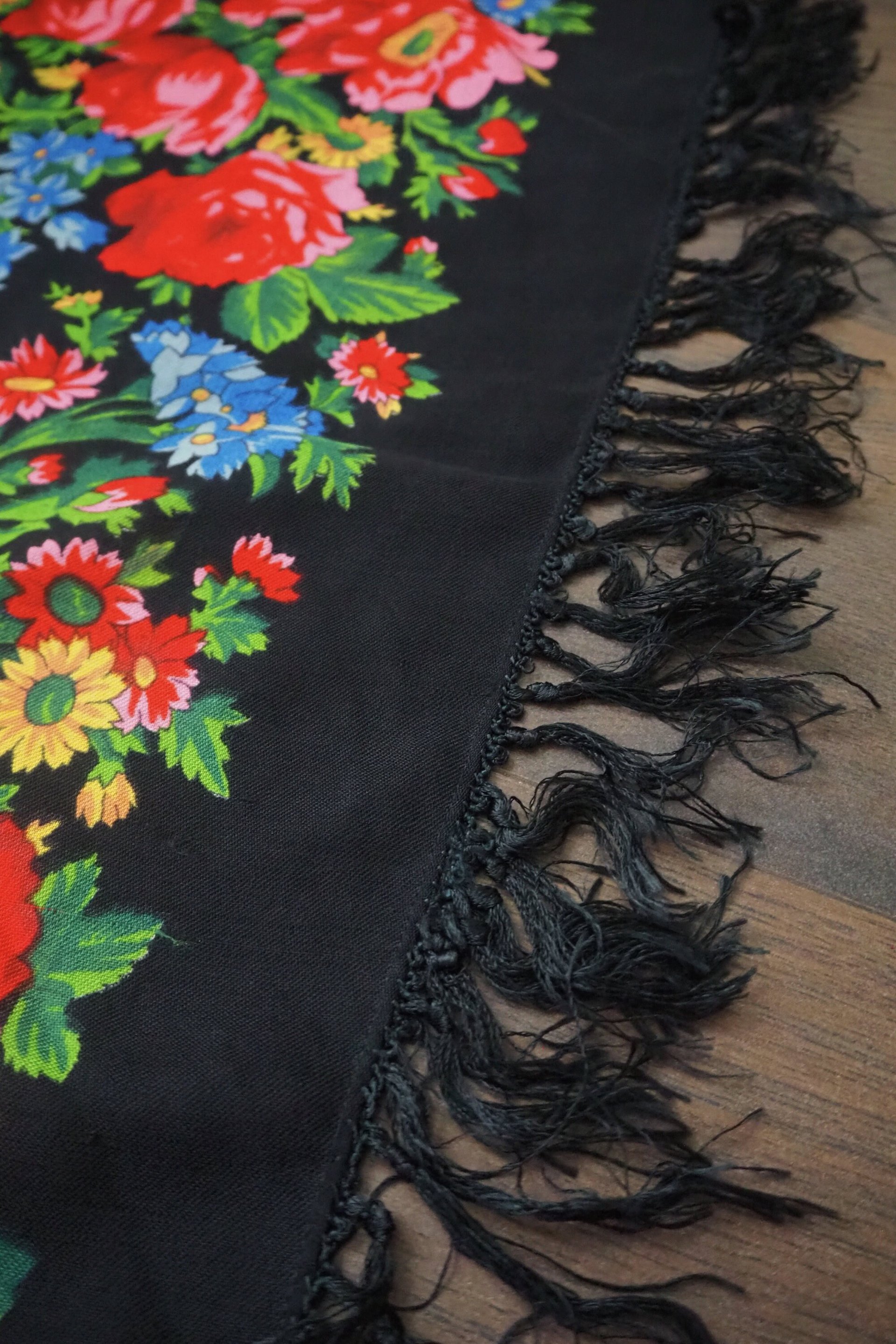 Vintage floral scarf | Floral scarf with a fringe | Vintage wool scarf | Vintage wool shawl | Russian floral scarf