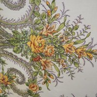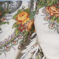 Large vintage wool scarf with a fringe. Beautiful florals on an off-white base.