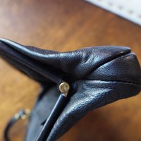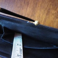 Vintage purse bag with kiss-lock closure and a short, thin strap. Made of beautifully soft black leather. Has a lining and a small open pocket inside.