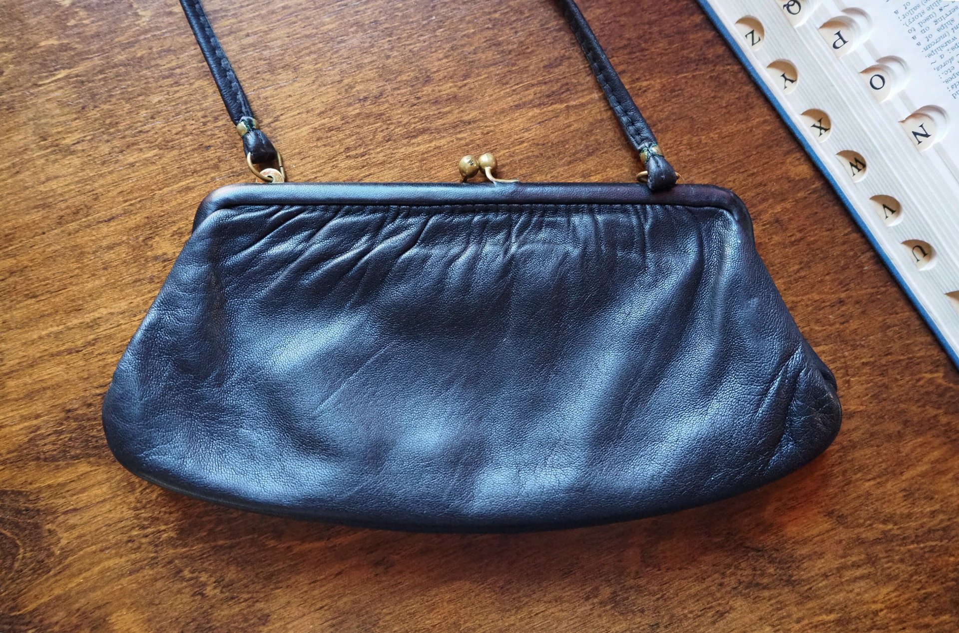 Vintage leather purse bag | Vintage leather bag | Black purse bag | Vintage leather clutch | Vintage purse