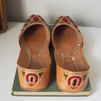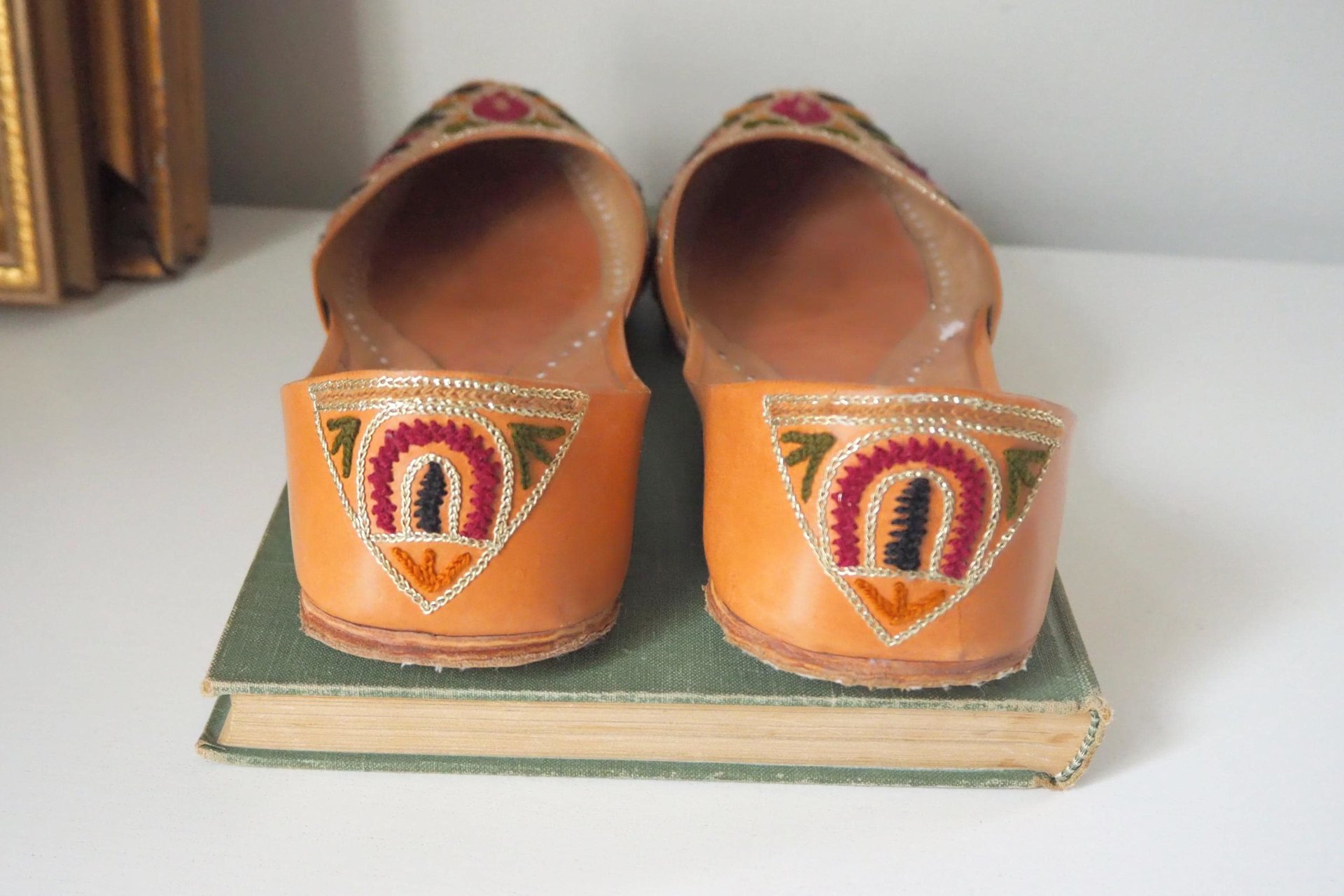 Vintage leather slippers | Embroidered leather slippers | Vintage leather slipper shoes | Indian slippers | Embroidered slippers | UK Size 4
