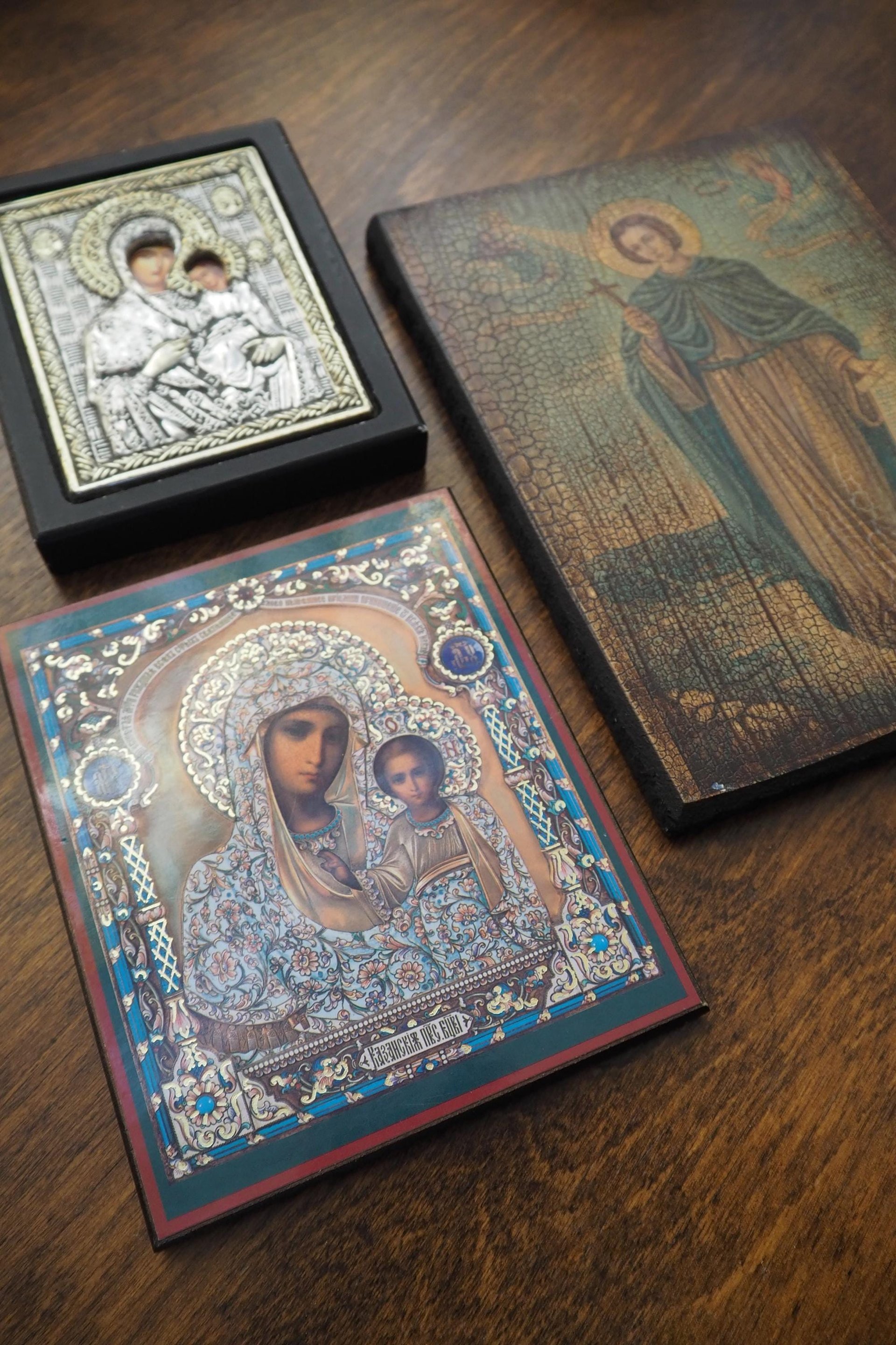 Vintage religious icons | Set of three small vintage Orthodox icons | Wooden religious icons | Vintage wooden icons | Small vintage icons