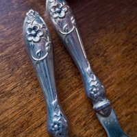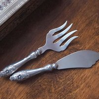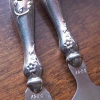 Set of small vintage serving utensils. Made of alpacca silver, both have the year 1980 engraved on them.