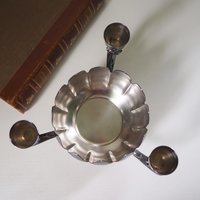 Vintage three arm candelabra | Footed lotus bowl candelabrum | Three arm candlestick holder | Vintage candelabrum | Leonard Silver plate