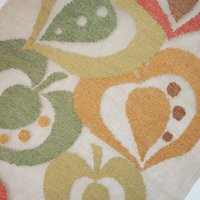 Vintage linen wall/window hanging with beautiful muted colors. Lightweight and almost transparent, has a wooden hanging rod at the top.