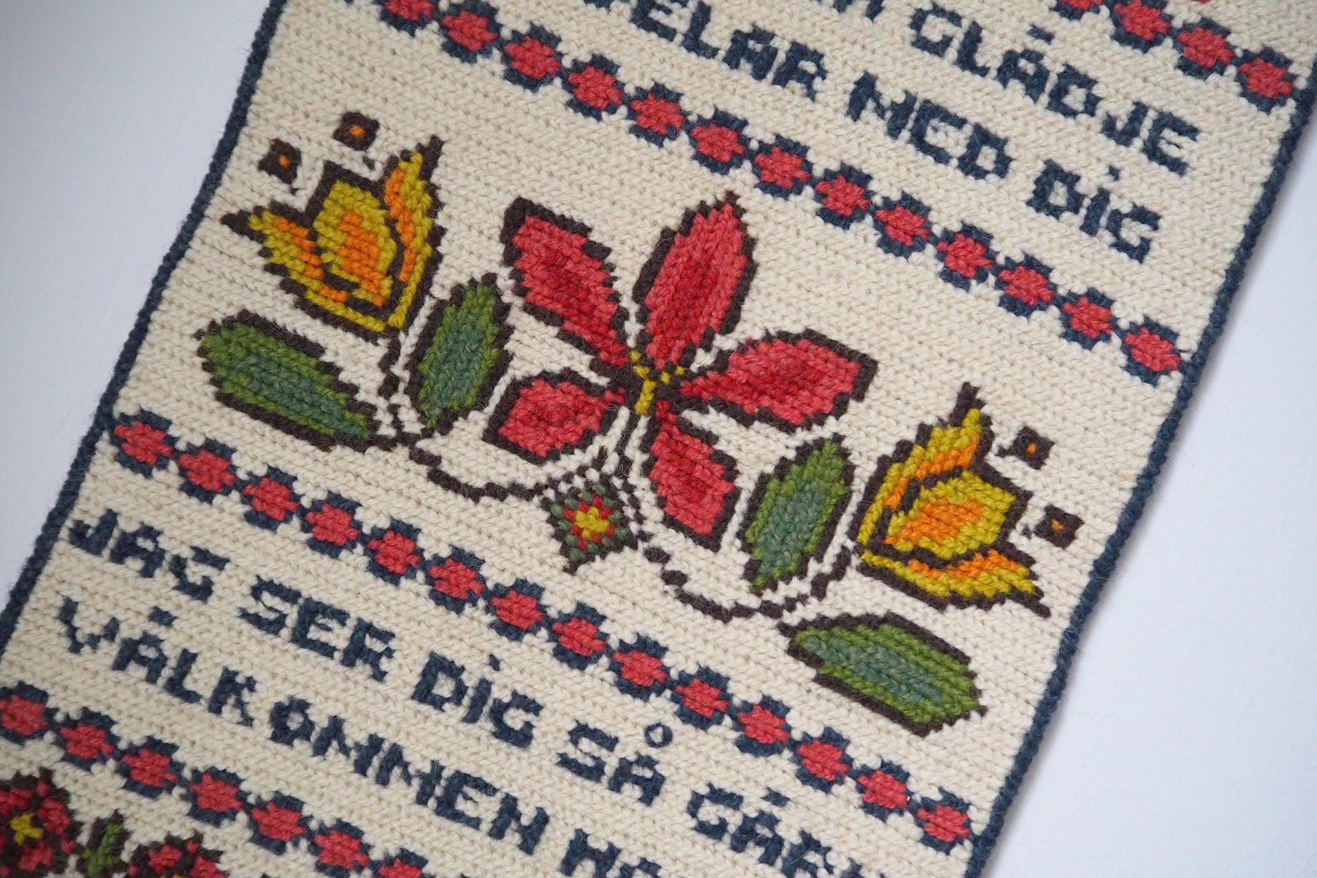 Vintage wall hanging | Scandinavian wall hanging | Swedish wall tapestry | Tvistsöm wall hanging | Wool embroidery | Welcome wall tapestry