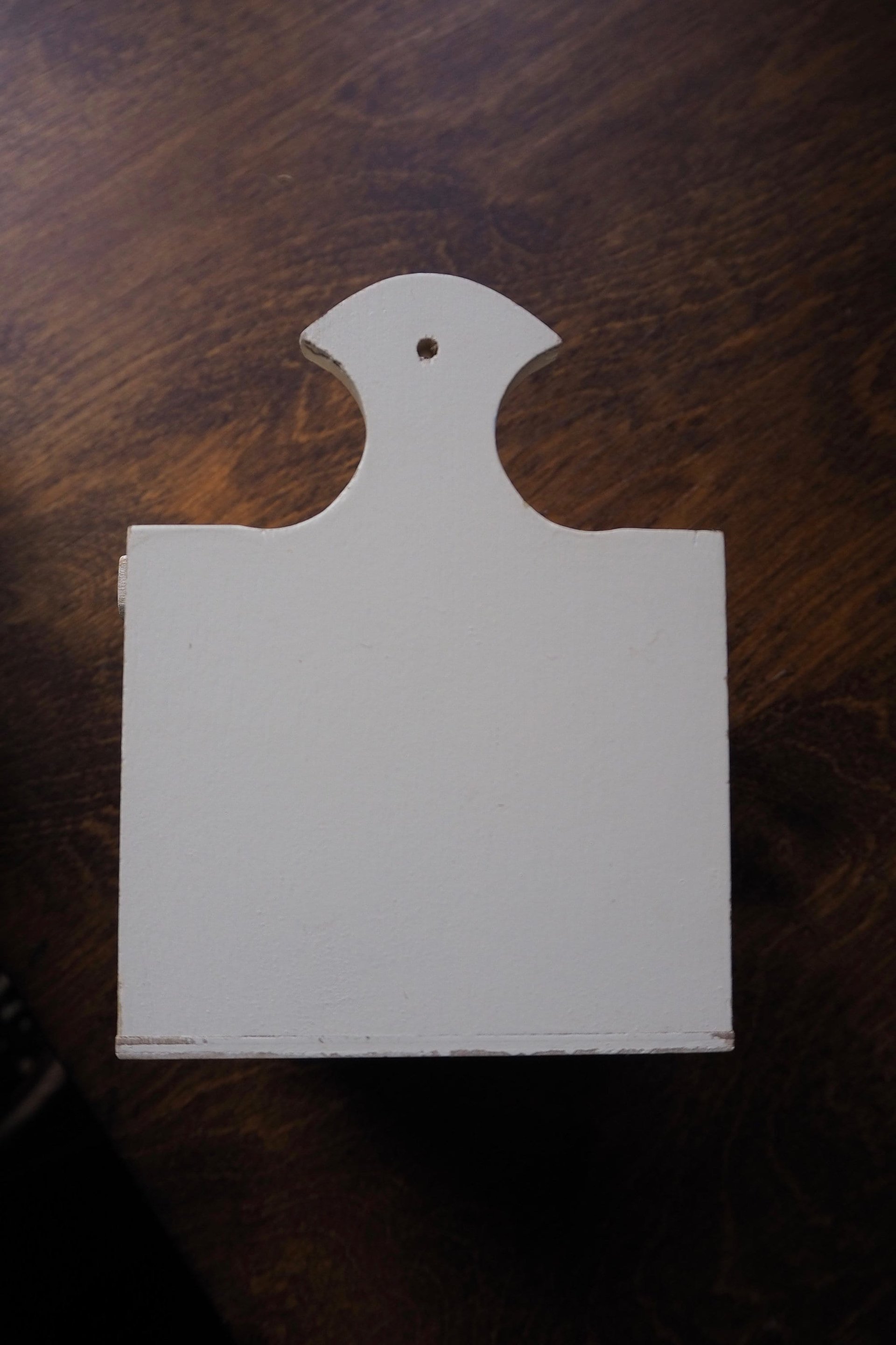 Vintage wooden salt box with a hinged lid. Handpainted blue flowers in the front. You can hang the box on your wall or just place on the kitchen counter or other surface.